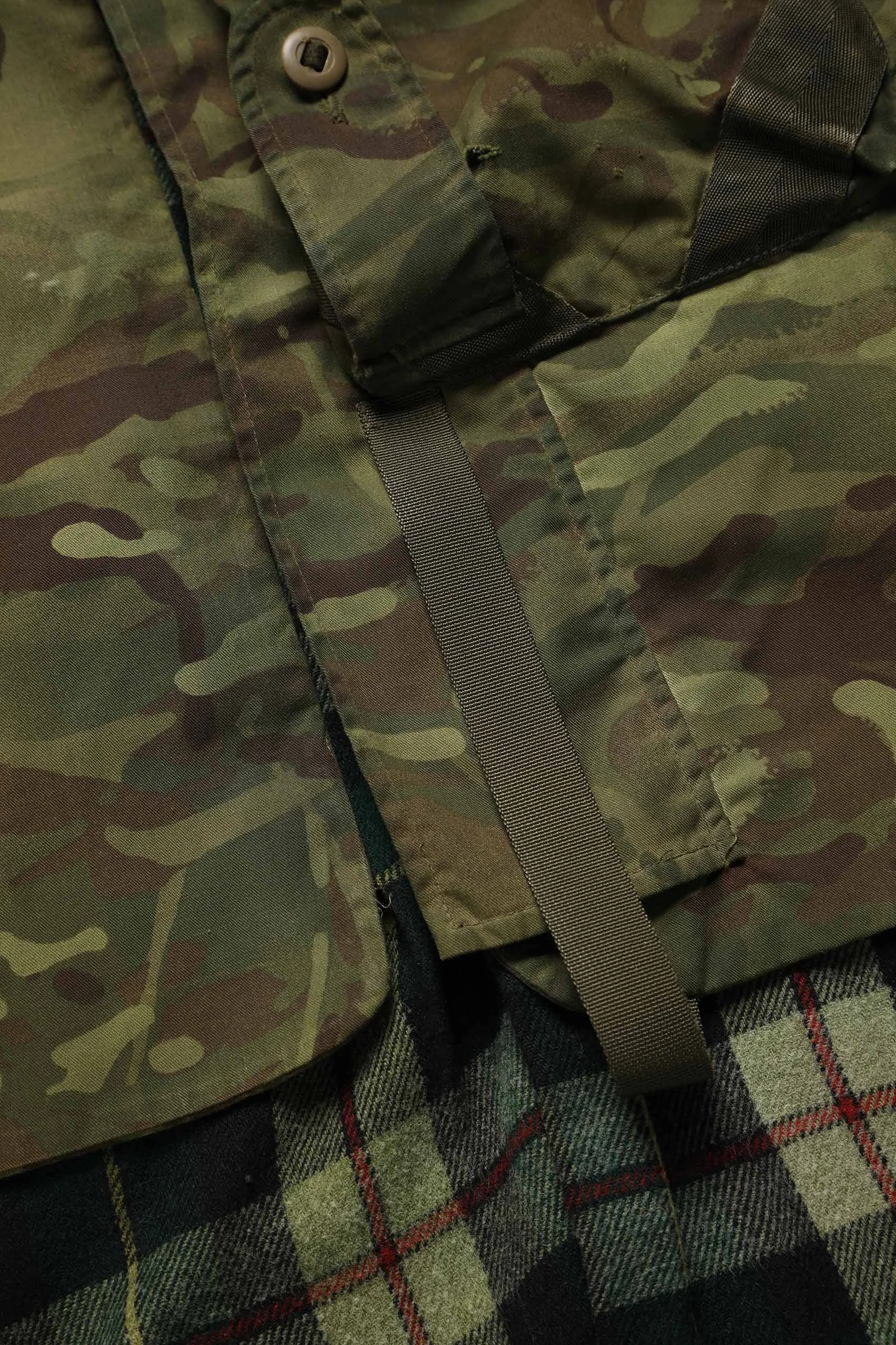 On top of this civil flannel check shirt has been stitched a British army body armour, becoming a unique piece.