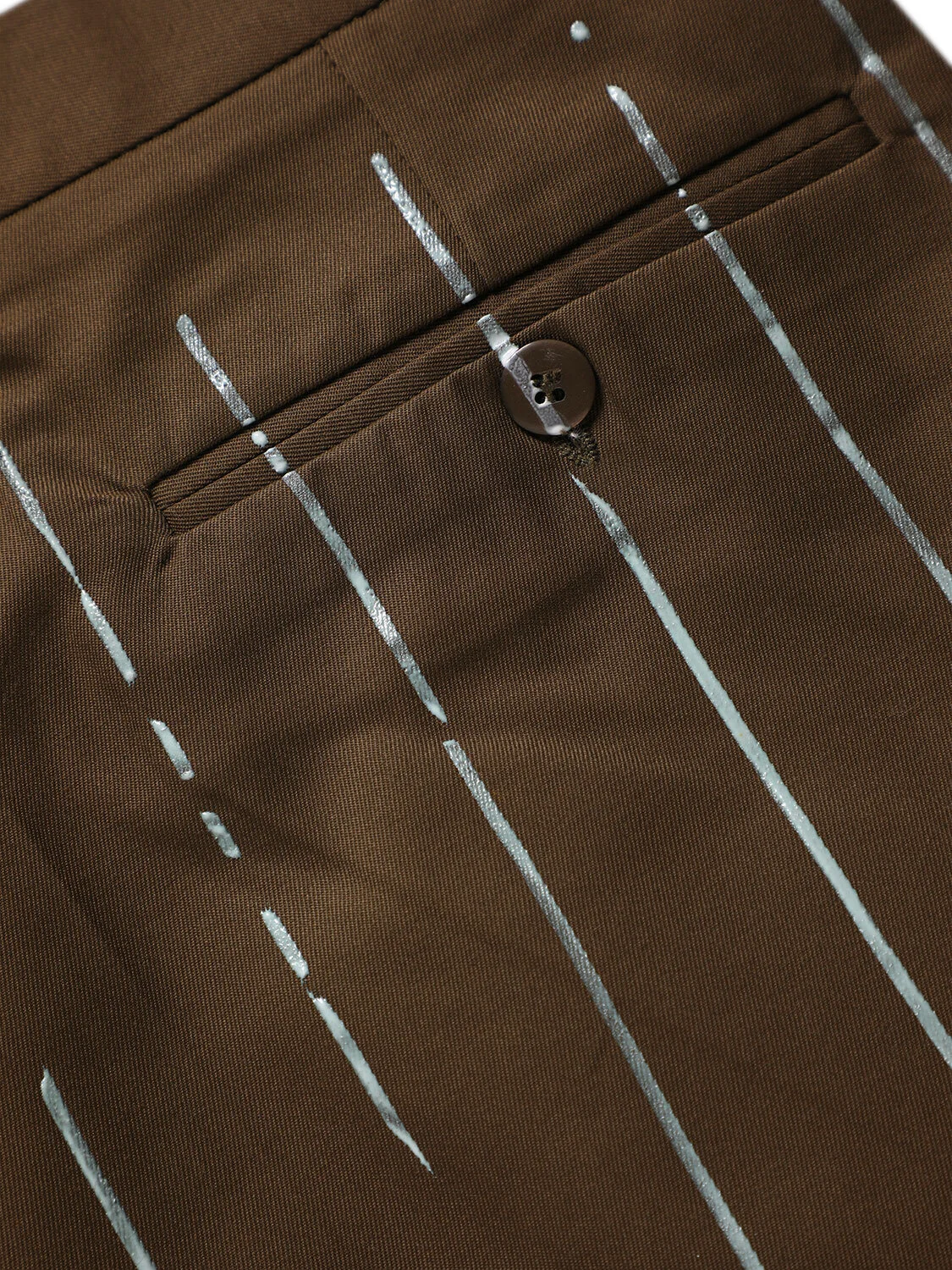 Original Italian army's shortened trousers with a striped silk screen print that recalls the fantasy of classic fabrics.
