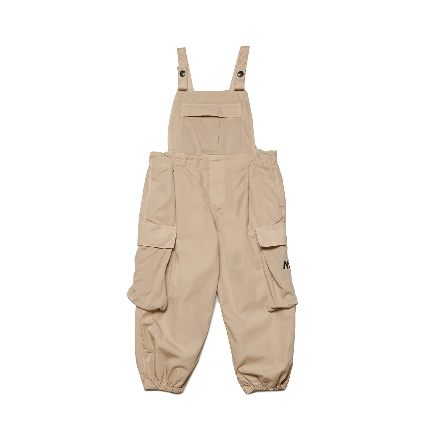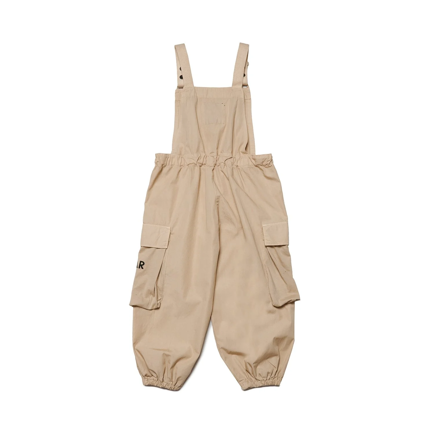 This jumpsuit is inspired by the historical cargo pant to which we have applied a bib that takes up the shape of the Cargo Pocket on the front.