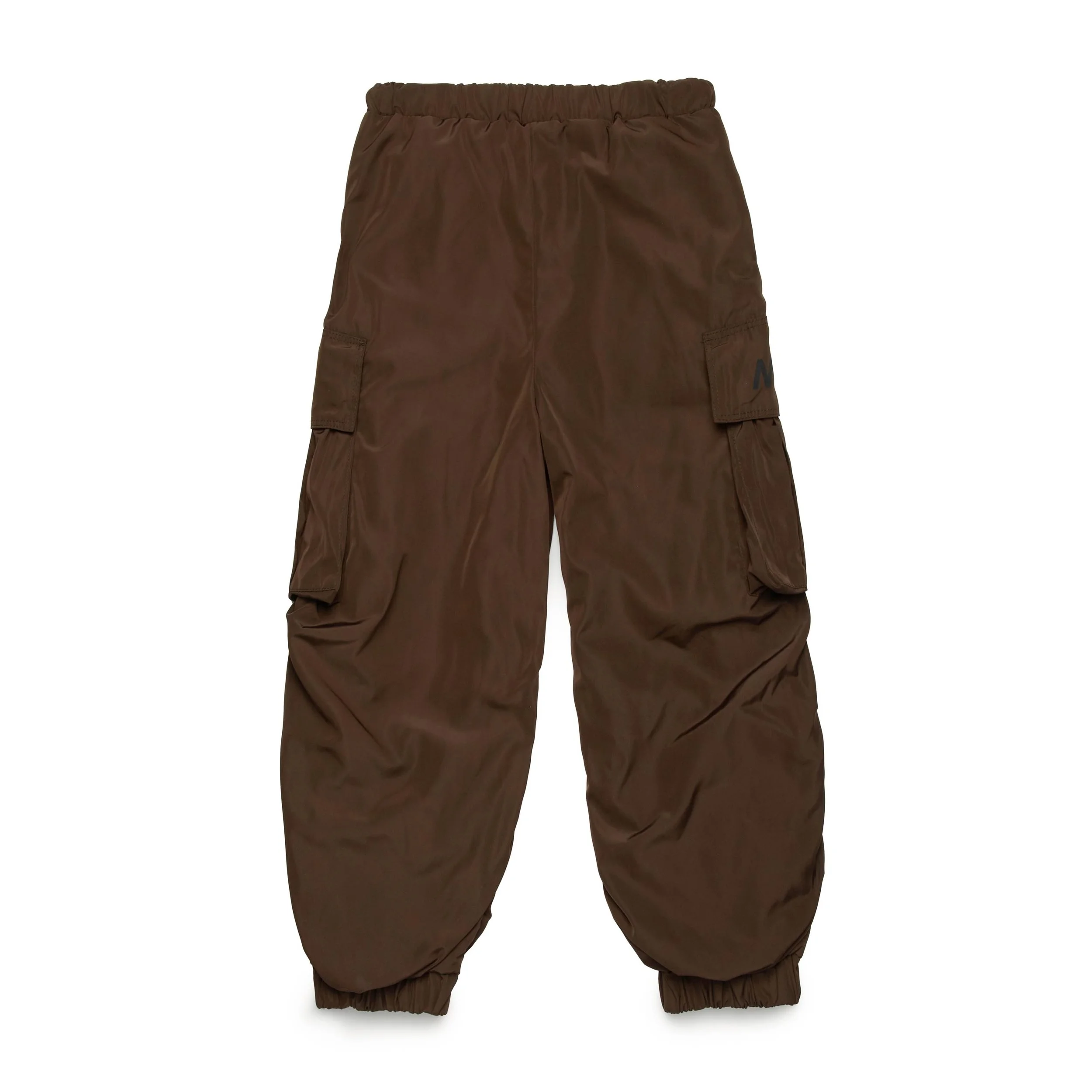 Pants inspired by the historic M65 model cargo pant, made of nylon fabric with cotton mesh lining from deadstock, with all seam details gathered.