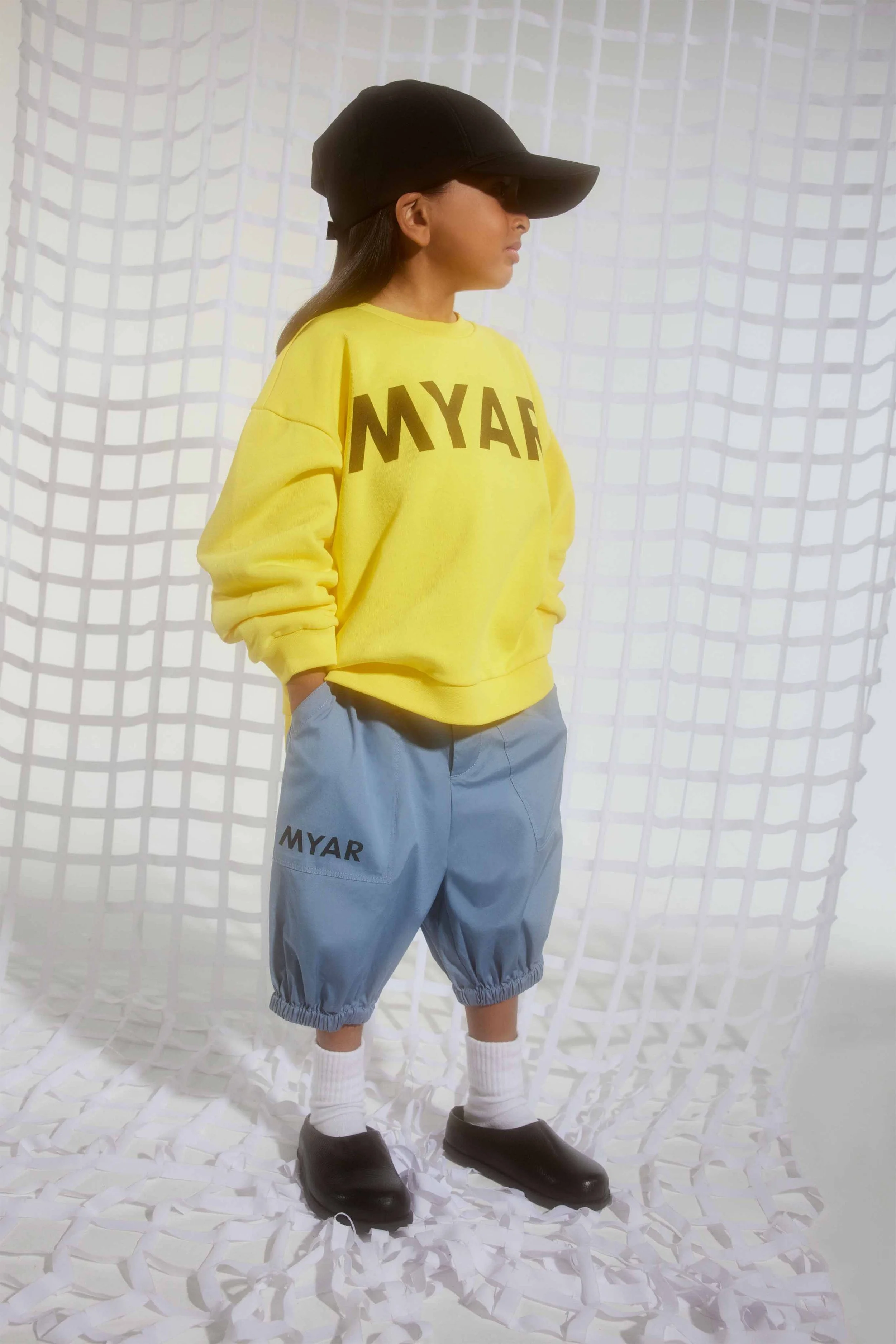 MYAR logo printed on the right leg using a bio-based origin colour.