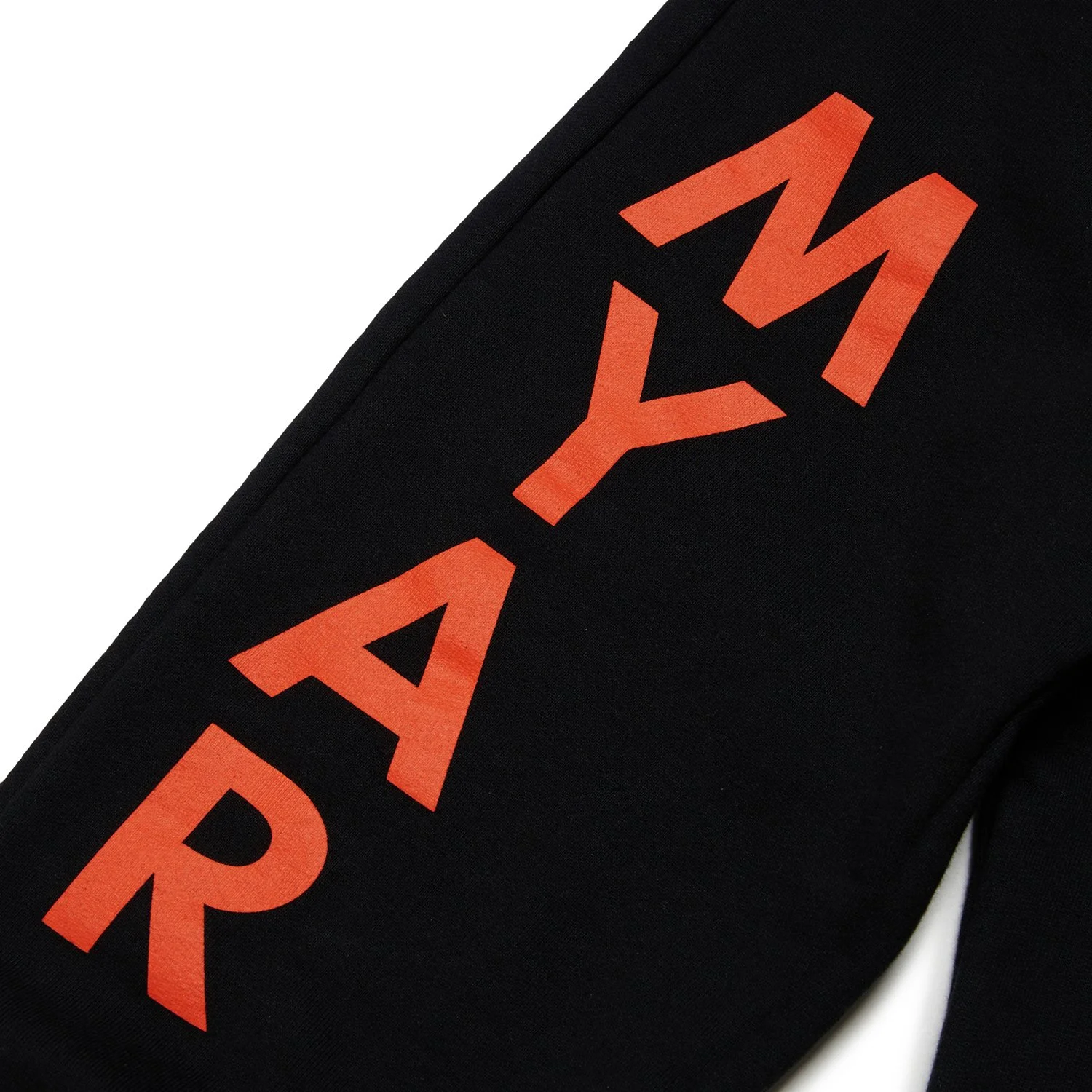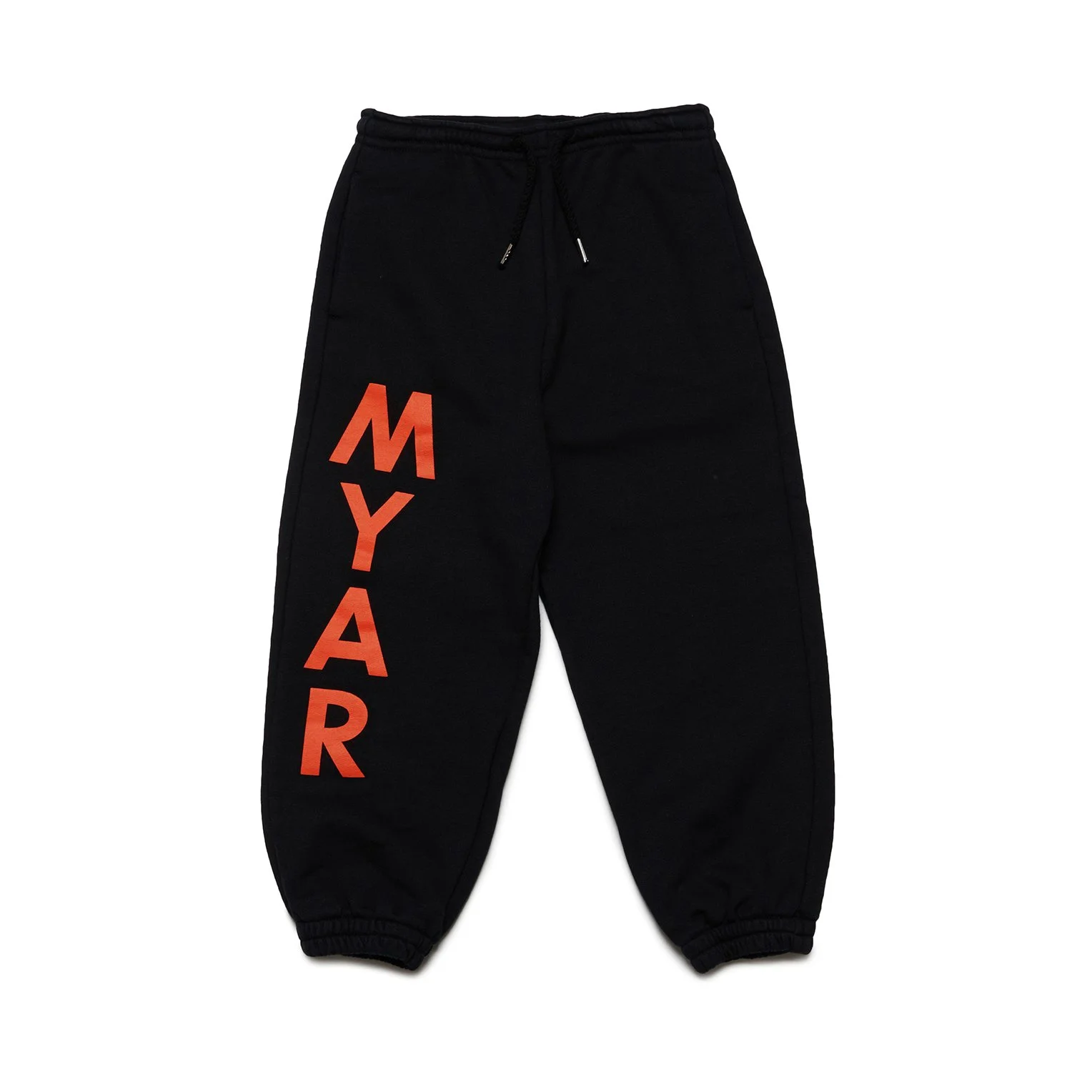 Sweatpant made from deadstock fleece fabric, with vertical MYAR logo printed using a bio-based colour along the right leg.
