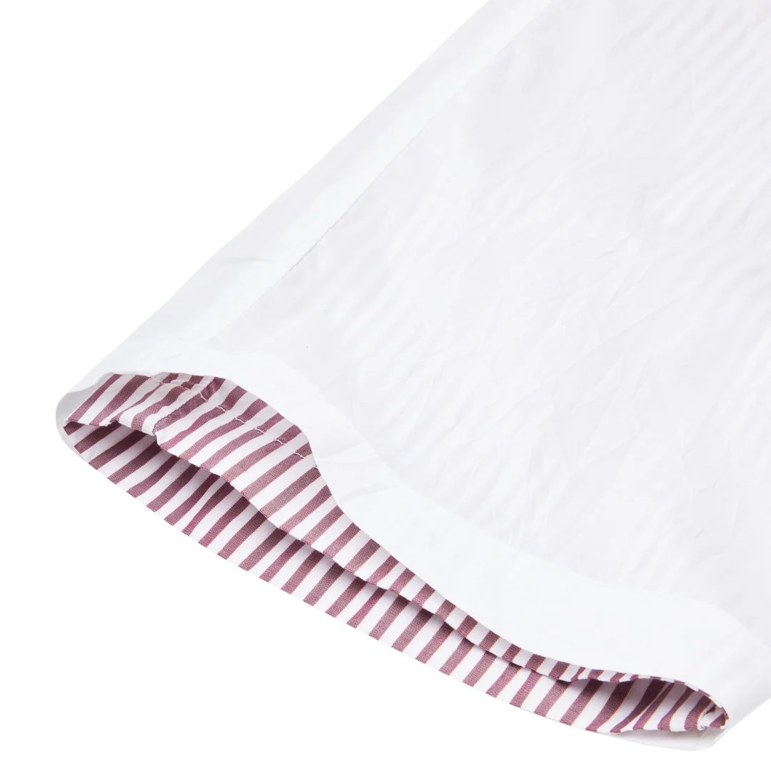 Double pant, plain colour on the outside and with striped printed fabric as lining. Cotton poplin.