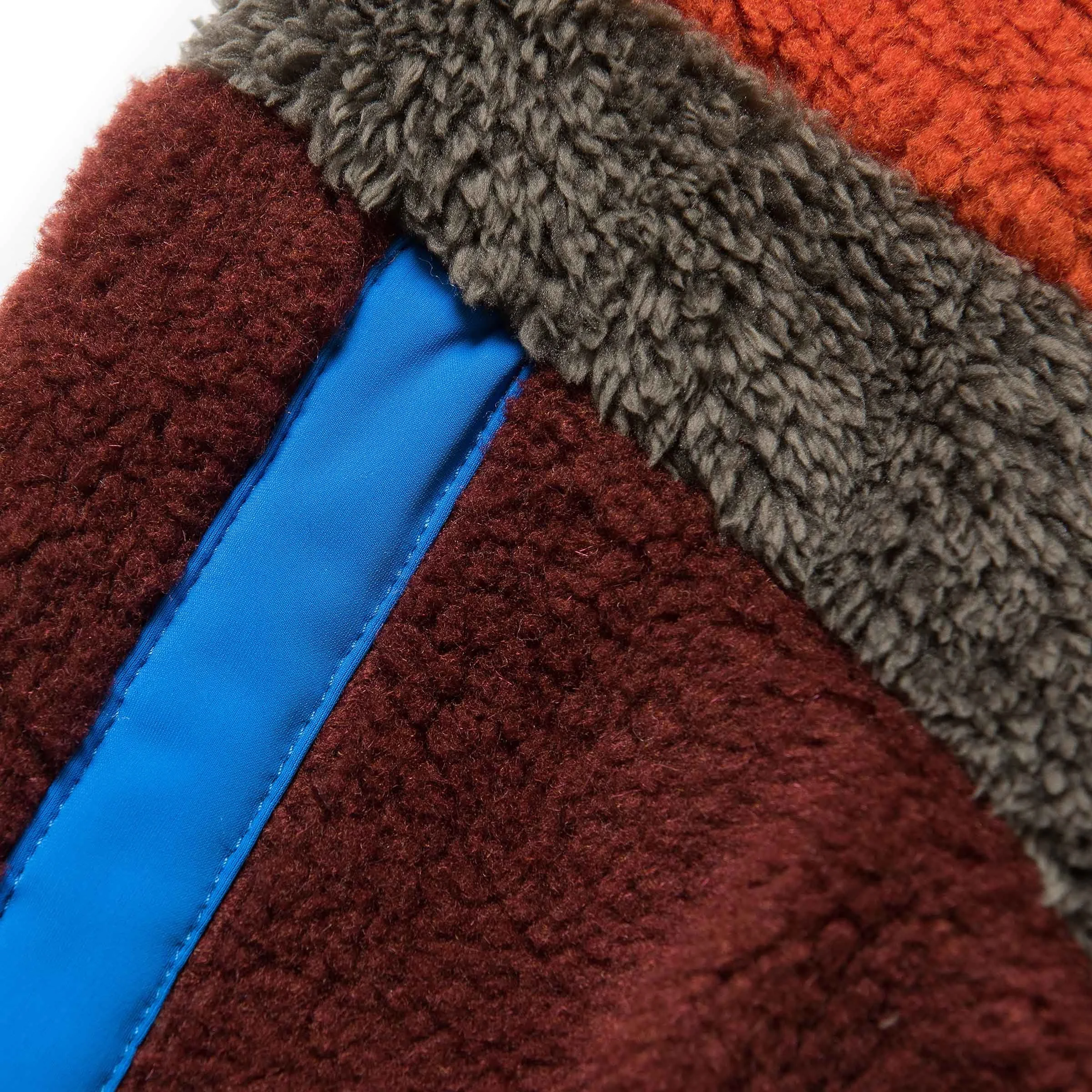 The jacket is inspired by the historic Aviator Jacket from the first half of the 20th century. Made from a combination of three shades of warm teddy fleece fabric.