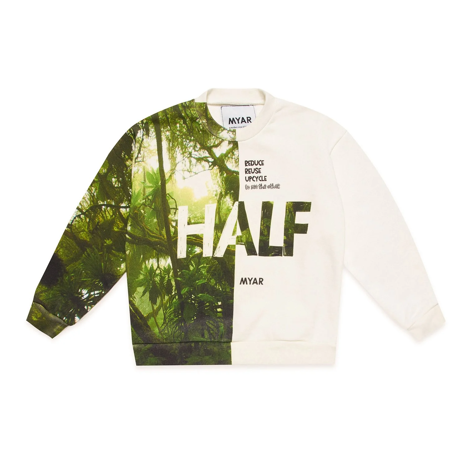 Crew-neck sweatshirt with raglan sleeve made from deadstock fabric, with rib at hem, neck and cuffs.