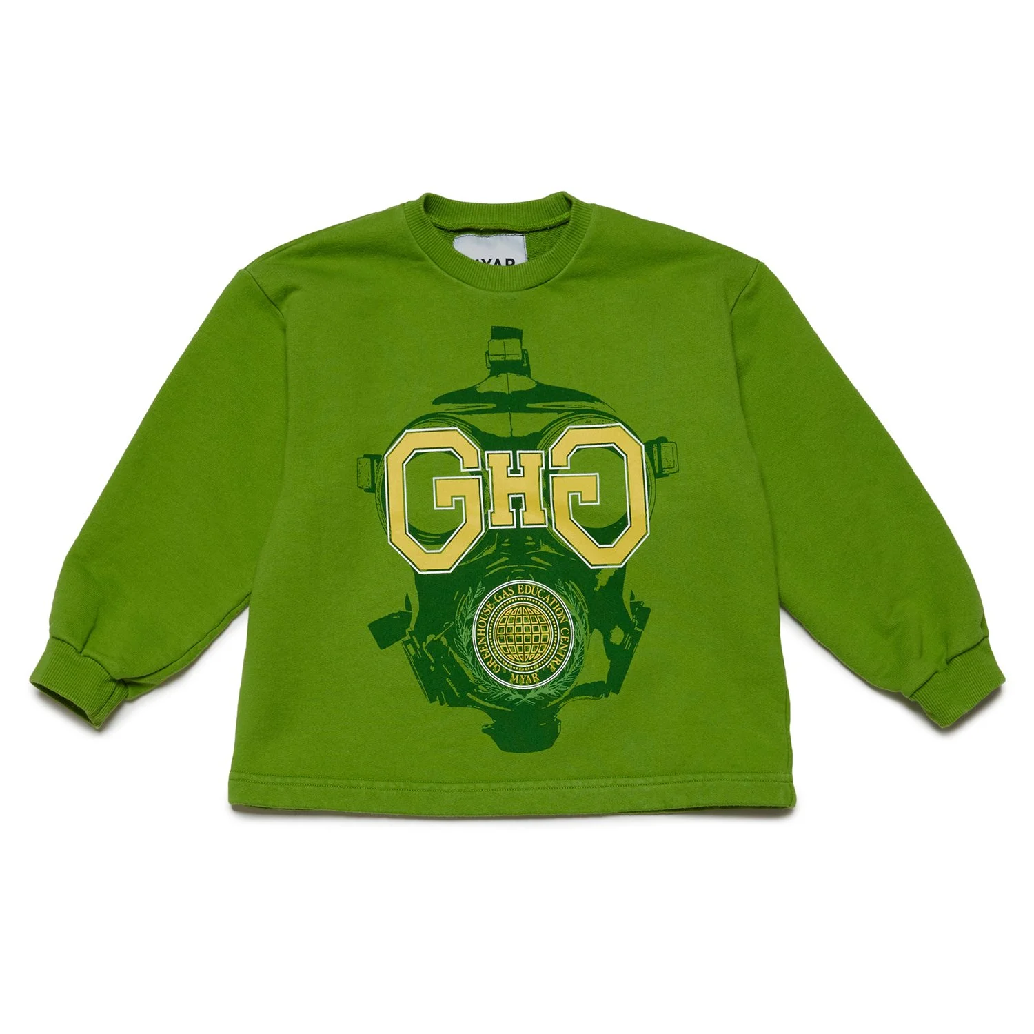 The print on this sweatshirt presents a graphic with a gas mask, invites us to reflect about the necessity to have cleaner air to avoid the use of masks in the future.