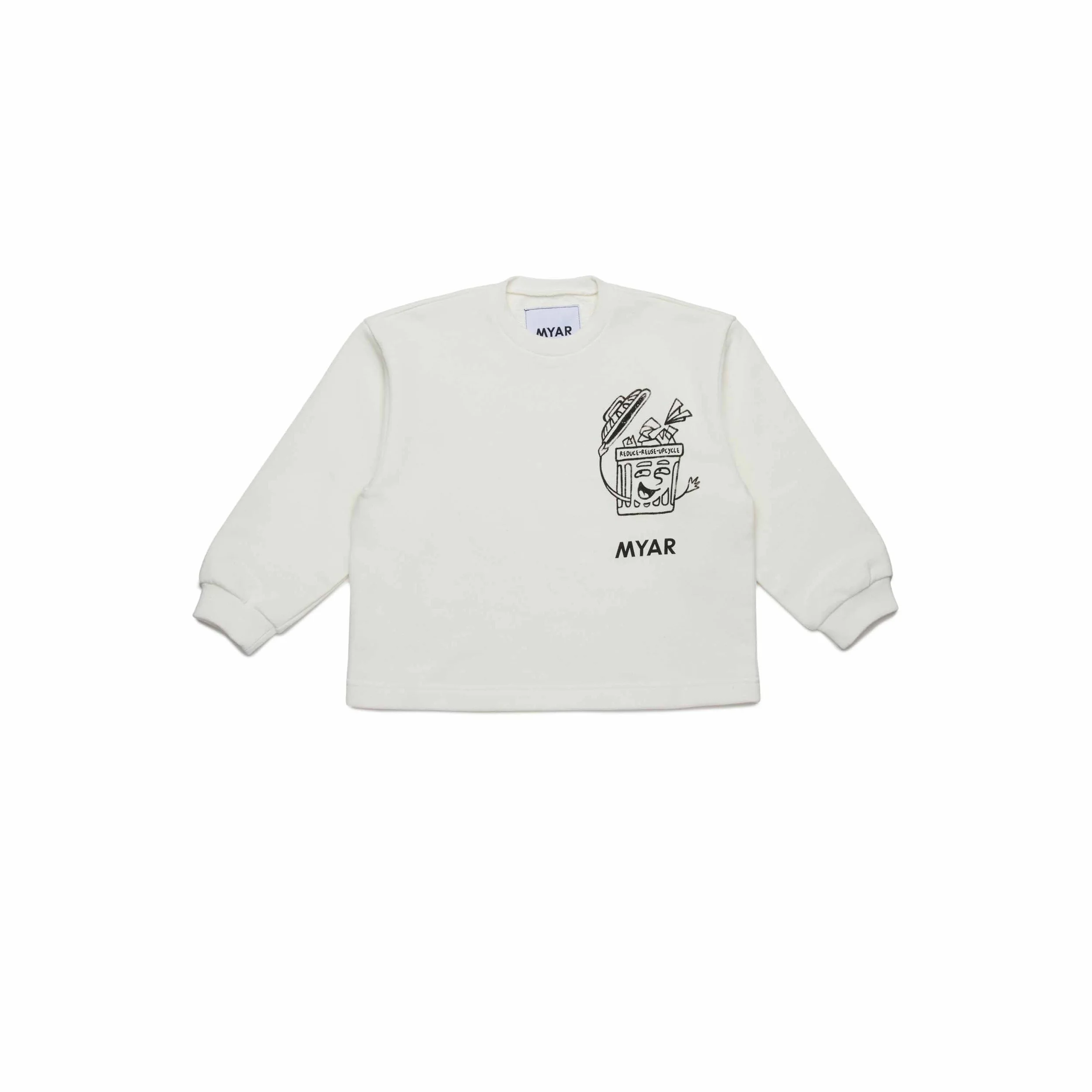 Crewneck sweatshirt made from deadstock fabric and ribbed neck.