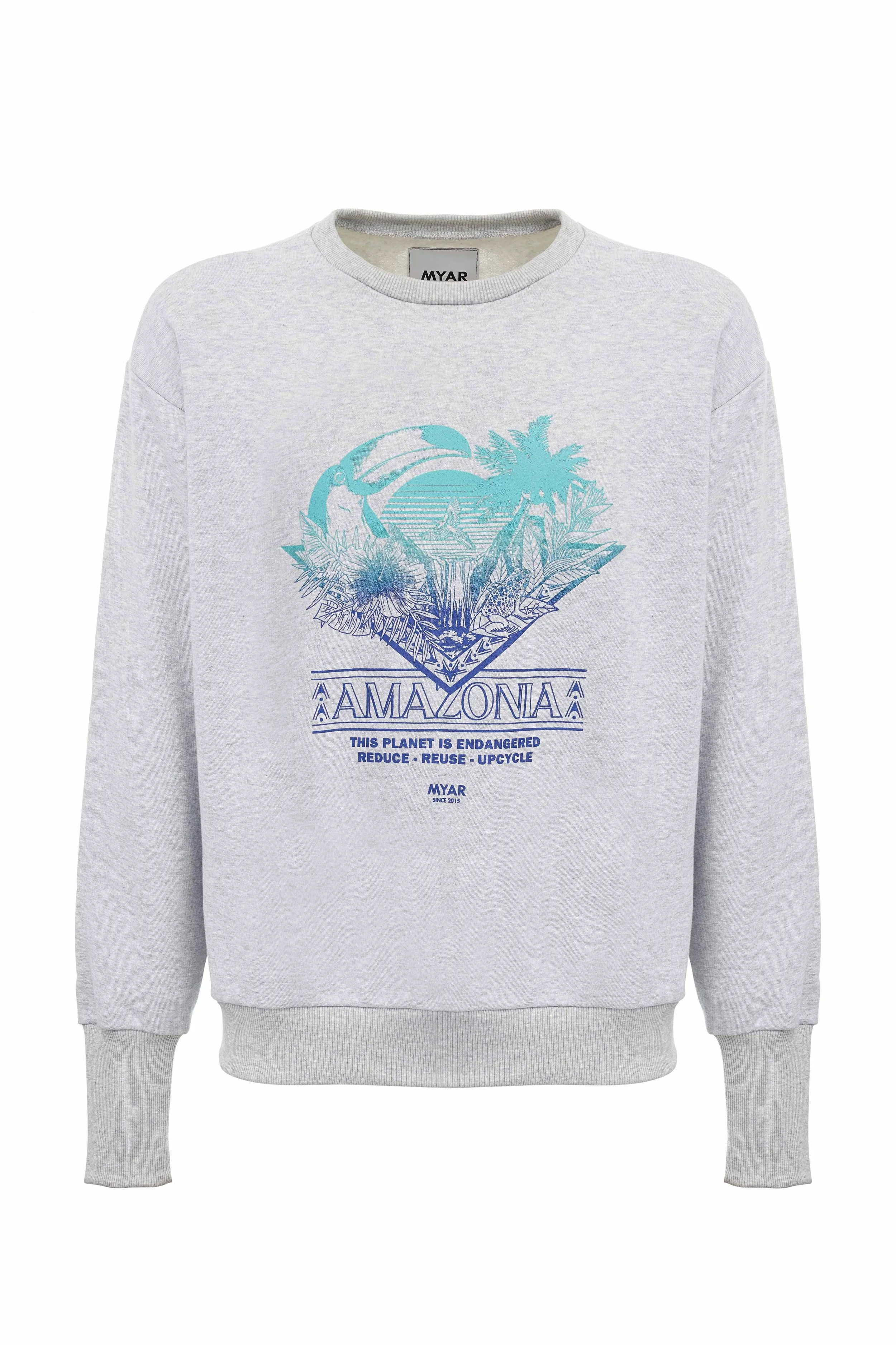 The MYAR X YOOX capsule collection is composed of two sweatshirt models, revisited with specially created graphics inspired by T-shirts from the 1980s, which invite us to reflect on the theme of global temperature rise, a problem that has repercussions on the survival of the Planet's biodiversity. The Amazon Rainforest and the Arctic Polar Bear thus become the protagonists of two prints that convey an important and highly topical message.