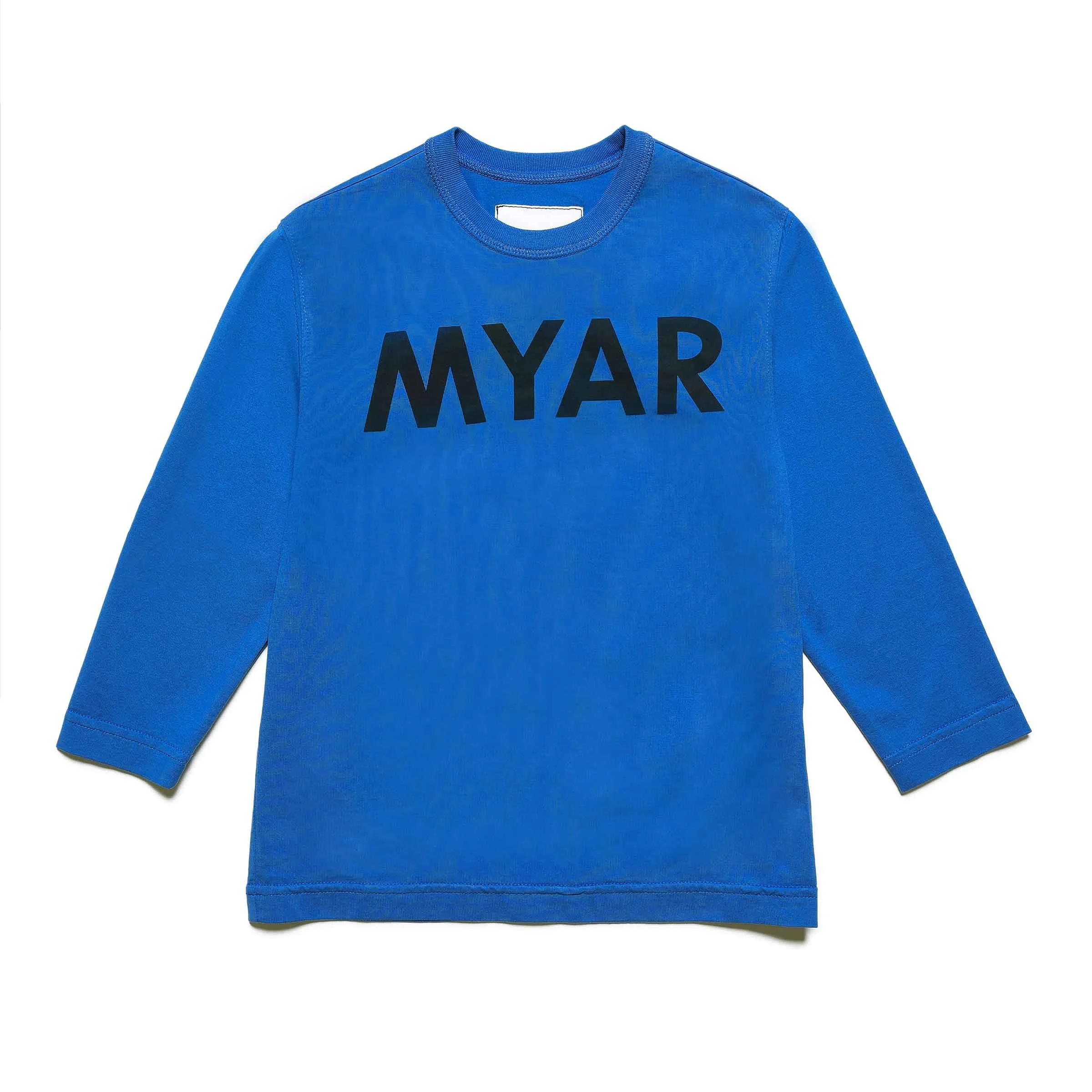 Long-sleeved, regular fit T-shirt made from deadstock fabric; cotton jersey. Tone-on-tone neck rib. MYAR logo printed with bio-based inks in contrasting colour on the front bust.