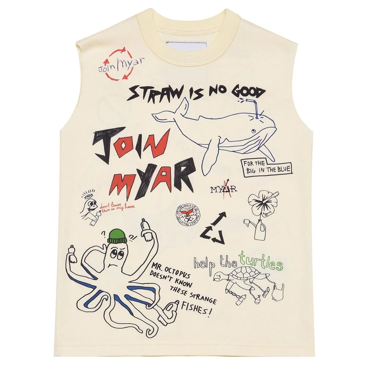 The water print all-over sea-&-land-animal print bears witness to MYAR’s commitment to raising awareness in adults and children about the importance of keeping our waters clean and showing the consequences of our actions on living creatures.